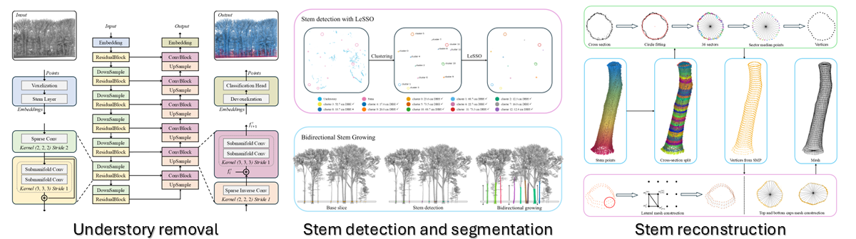 I currently focus on developing 3D vision algorithms on LiDAR point clouds for automatic forest inventory.
